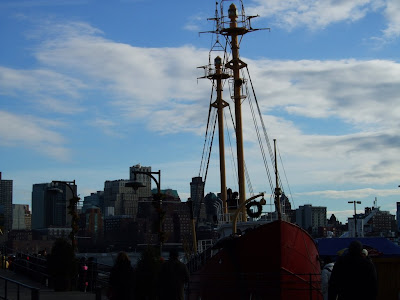 古老的帆船搭配現代的建築物...有點超現實的感覺。